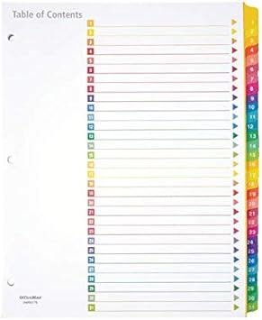 Amazon Com Office Depot Table Of Contents Customizable Index With Preprinted Tabs Assorted Colors Numbered 1 31 14707 Binder Index Dividers Office Products
